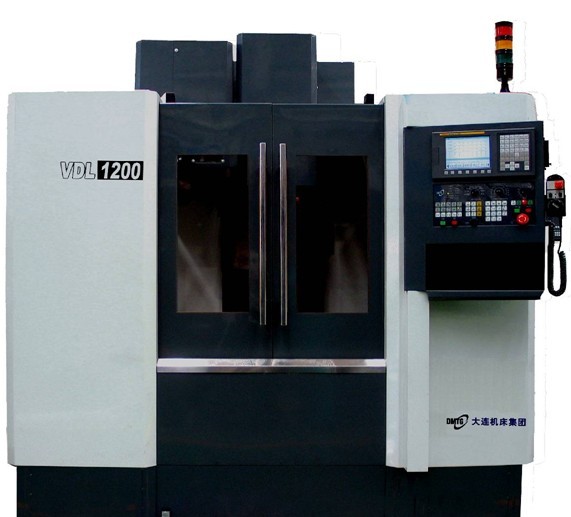 VDL-1200立式加工中心是大连机床集团公司引进先进技术生产的新一代数控机床,该机床独特的直线滚动导轨副(X、Y轴)加淬火硬轨贴塑导轨副(Z轴)设计,不仅适用于板类、盘类、壳体类、精密零件的加工,而且适用于模具加工。机床带有ATC交换装置,全防护罩,自动润滑系统、冷却液喷淋系统、自动排屑装置、手动喷枪及便携式手动操作装置(MPG)。零件一次装夹后可完成铣、镗、钻、扩、铰、攻丝等多工序加工,具有自动化程度高、可靠性强、操作简单、方便、宜人,整体造型美观大方、机电一体化程度高等优点。主要特点如下: